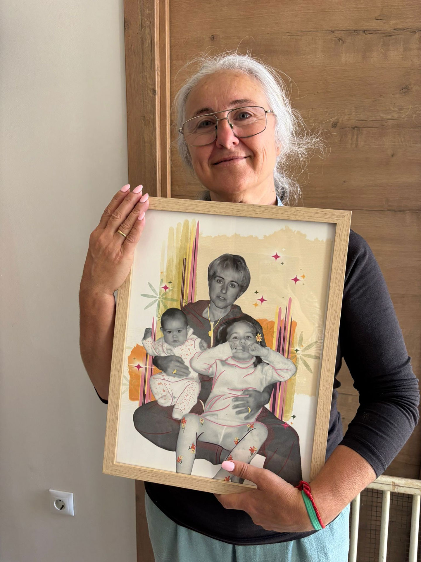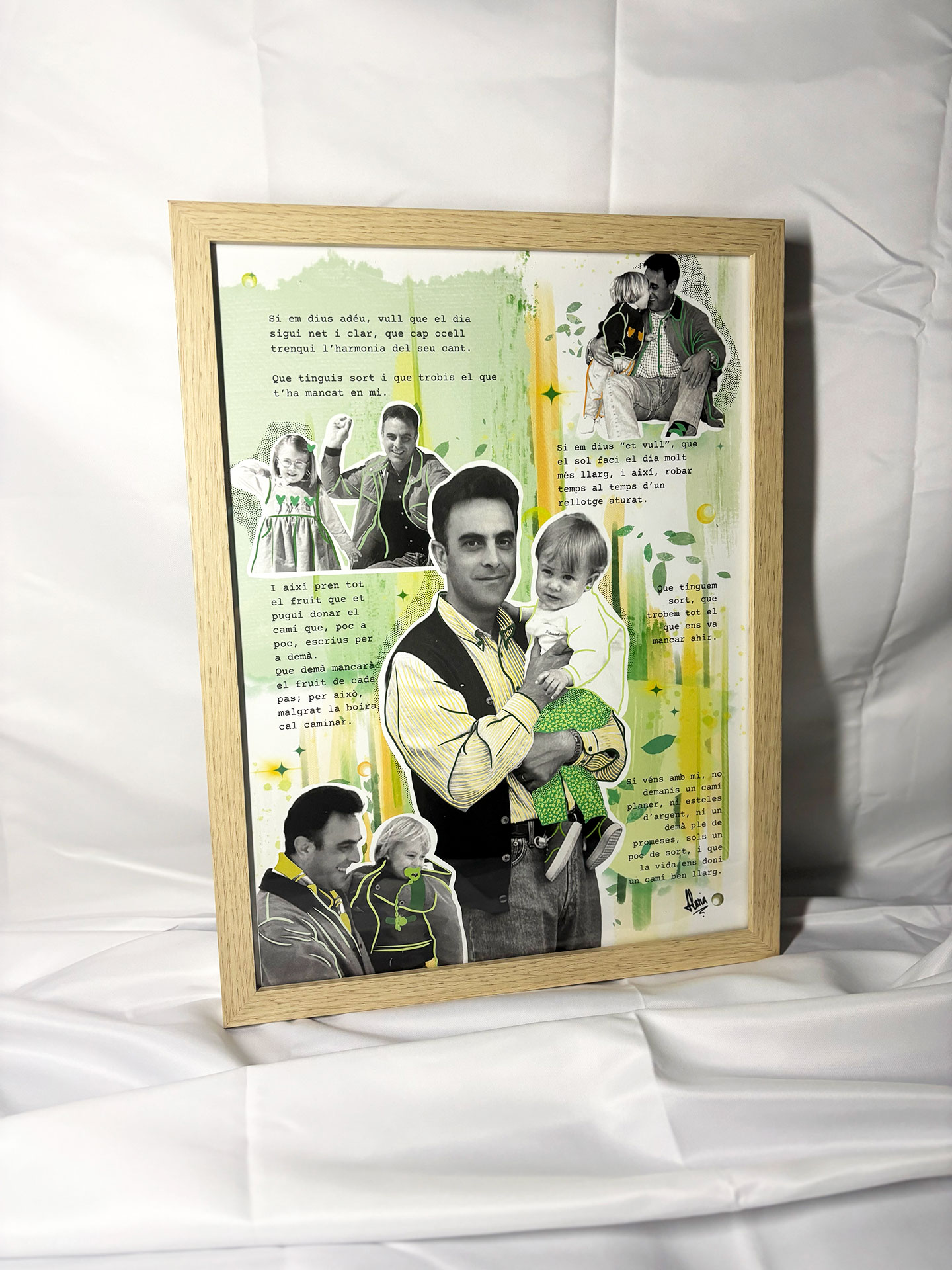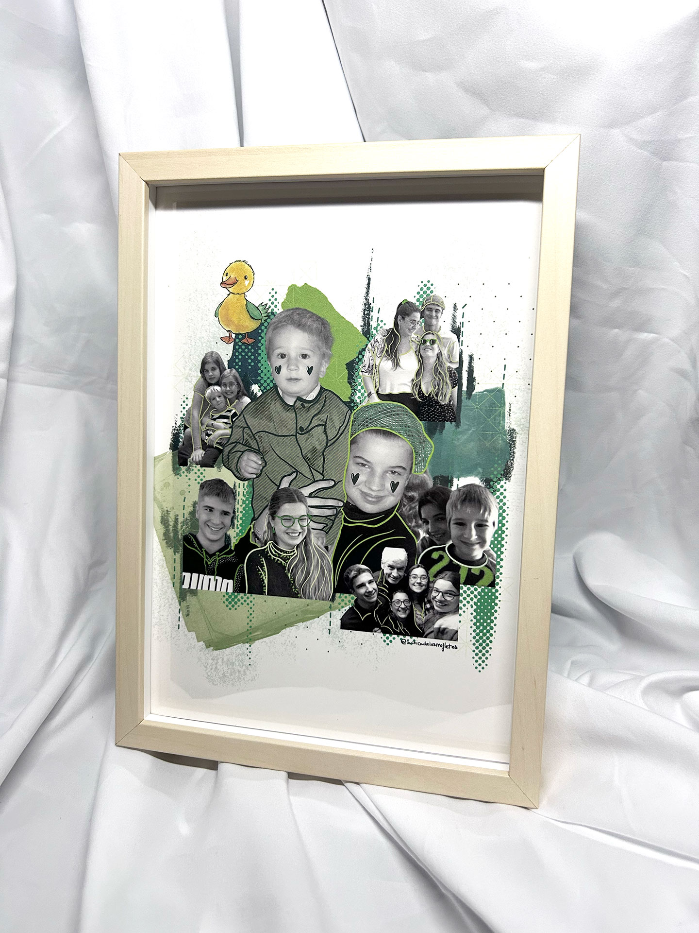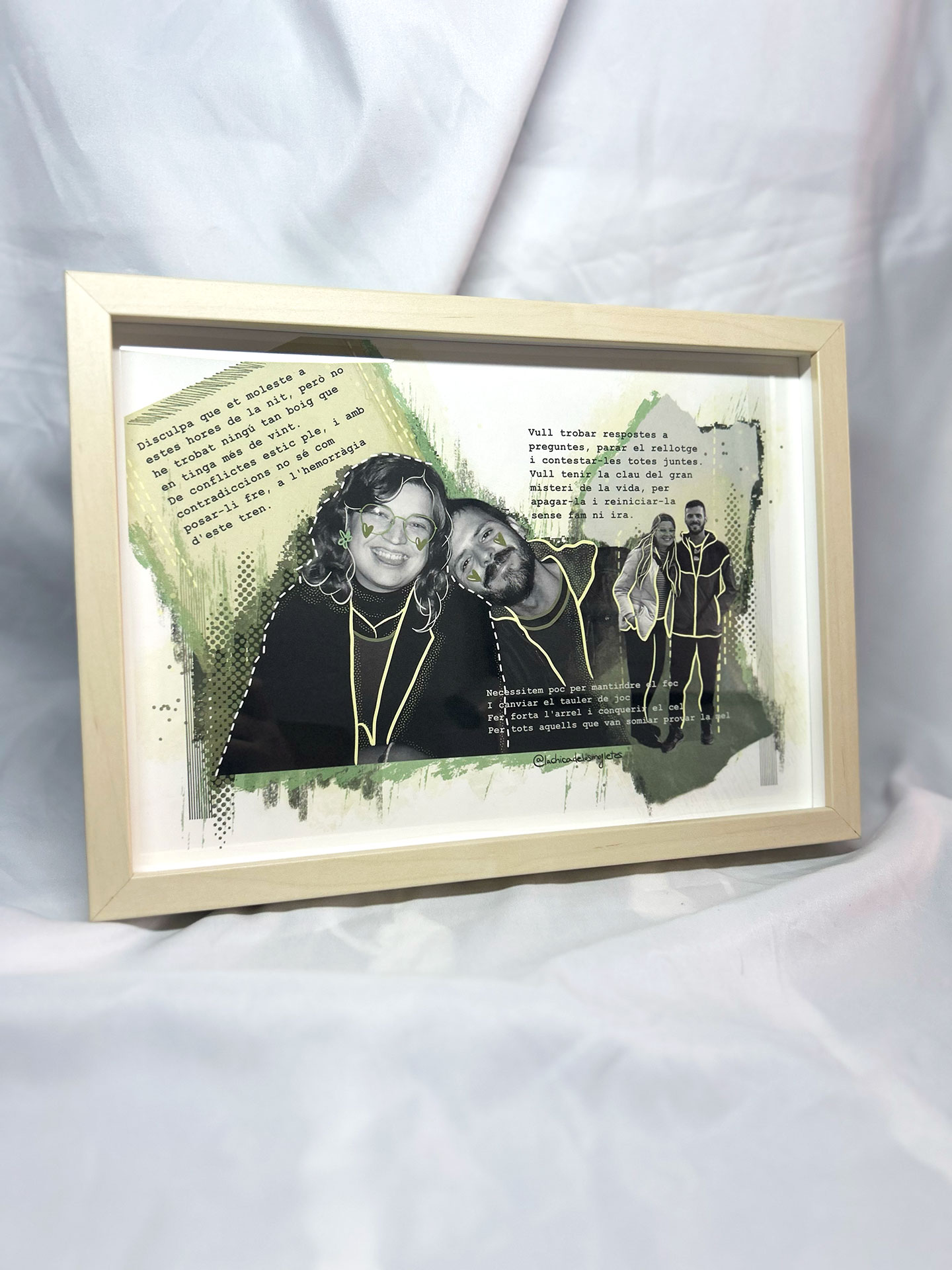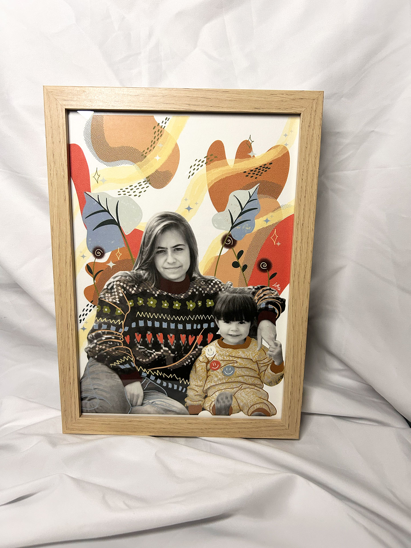 Olvídate de las fotos planas. Aquí, transformamos tus fotos antiguas o favoritas en una verdadera obra de arte con carácter. El secreto está en darle una nueva vida a esos momentos aplicando diferentes trazados y texturas vibrantes encima de la fotografía y en el fondo. El resultado es una pieza llena de personalidad y profundidad, un recuerdo que fusiona la nostalgia del pasado con el arte moderno.