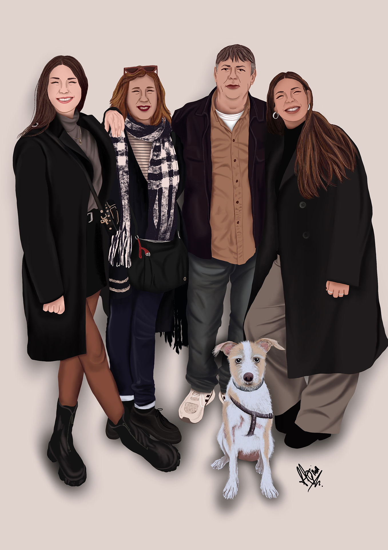 Piénsalo, un retrato único, con todos los detalles que te hacen especial. Es ideal para inmortalizar a parejas, tu familia al completo, tu pandilla de amigos o con tu mascota.