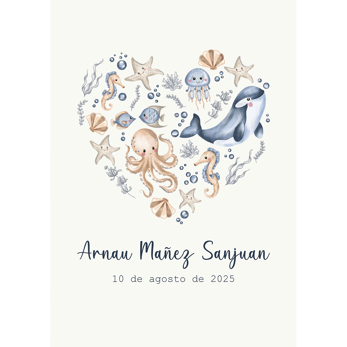 Tú decides los protagonistas: ¿un tierno animal, lunas y estrellas, o un vehículo? Y eliges el fondo: ¿sencillo a color o un paisaje dibujado lleno de detalles? Yo me encargo de crear ese diseño digital con un estilo encantador y adaptado al universo infantil.